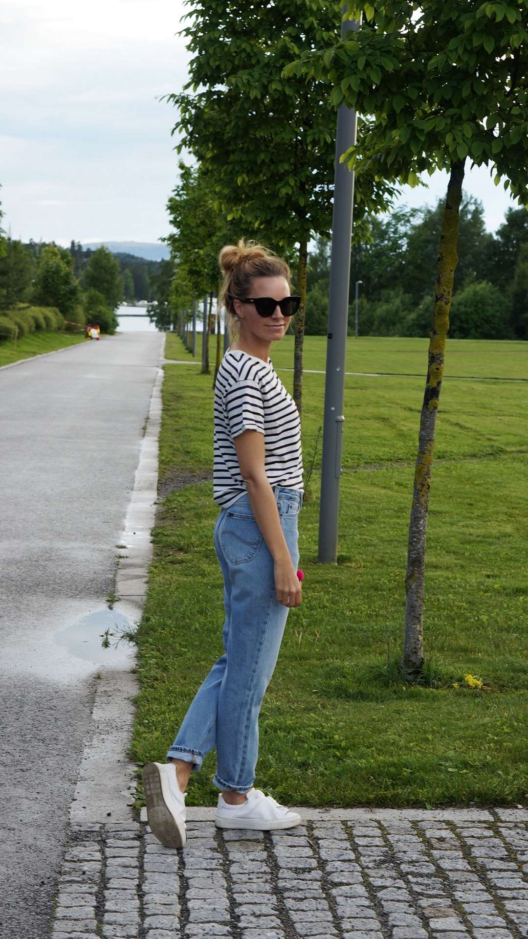 Jeansen Anja har på seg er en helt ny fit fra Lee som heter Mom Straight og finnes i to ulike vasker i butikken!
