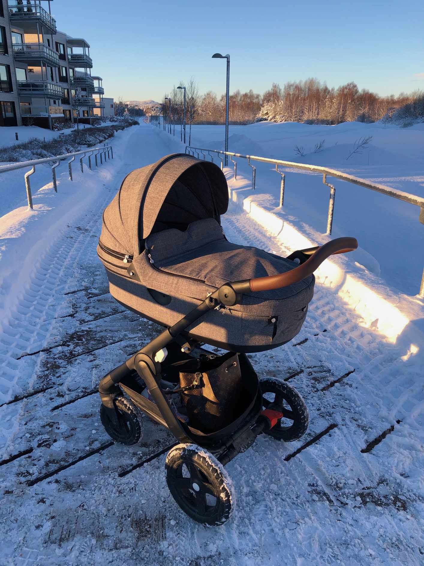 Hver morgen kl 09 går jeg og M til Sats (denne uken har det blitt på kvelden siden jeg er hjemme me syk F). Hun sover som regel da, så det er bare å sette vognen inn på mini Sats, og så gymmer jeg en times tid. Etter trening går vi en tur, og jeg skulle ha vært med på det bildet under med vognen, men ja, litt vanskelig å bli med på alle bilder når jeg er alene, haha. Da får det bli bilde av «M» og vognen.
