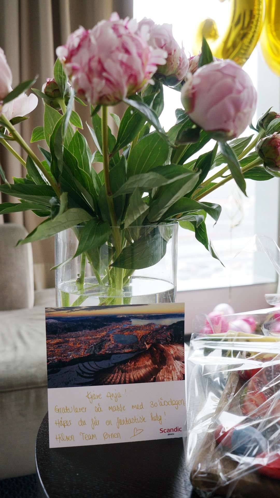 I dag sjekket vi inn på Scandic Ørnen, og når vi åpnet døren inn til rommet hadde Scandic dekorert med ballonger, blomster og stæsh til meg. Grattis med 30!!! Det hadde jeg ikke forventet i det heeeele tatt og jeg ble så glad, ydmyk og overveldet.