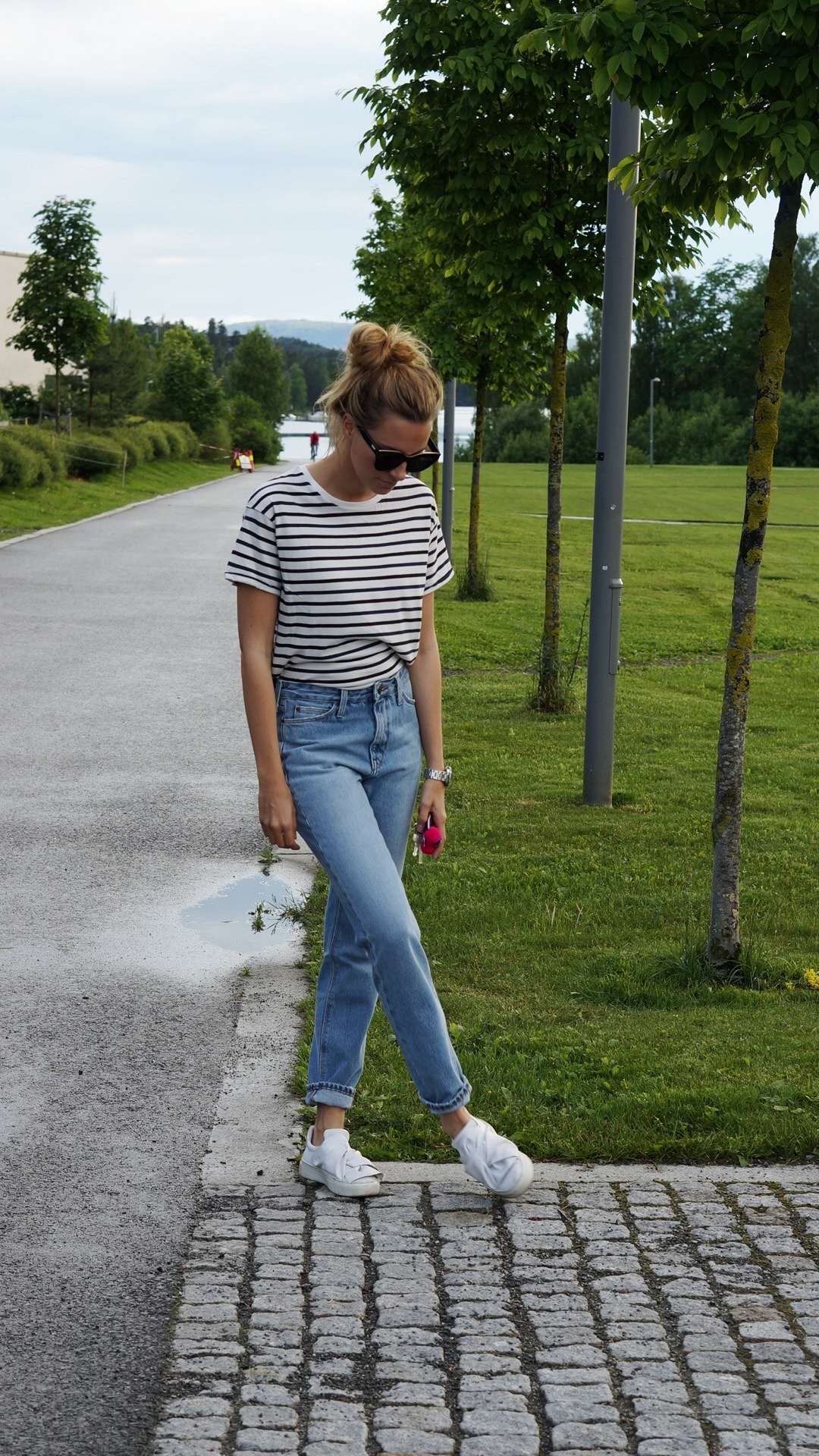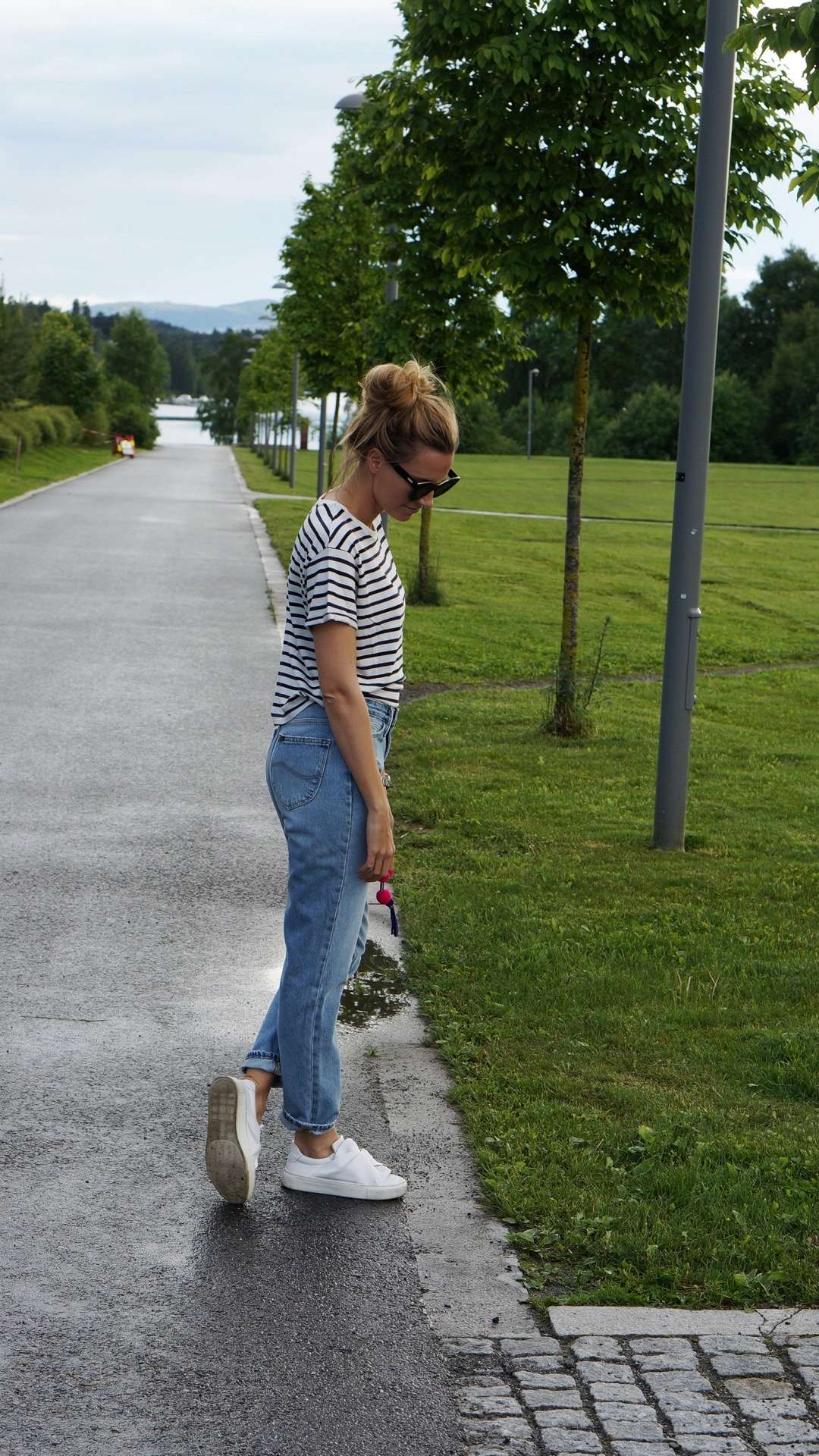 Jeansen Anja har på seg er en helt ny fit fra Lee som heter Mom Straight og finnes i to ulike vasker i butikken!